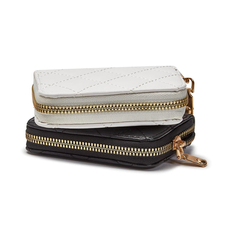 This stylish and practical wallet features a quilted design that adds a touch of sophistication and texture to your accessory collection. The zip-around closure ensures the security of your cards, coins, and bills, while the compact size makes it easy to slip into your pocket or handbag.