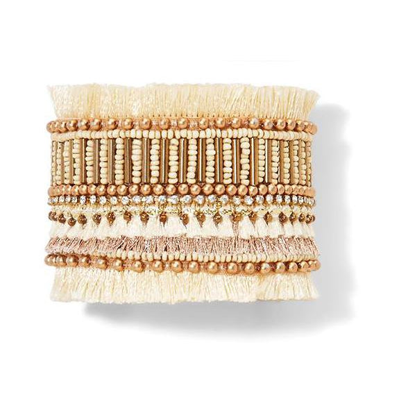 Hand Beaded Adjustable Ivory Cuff Bracelet
