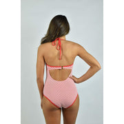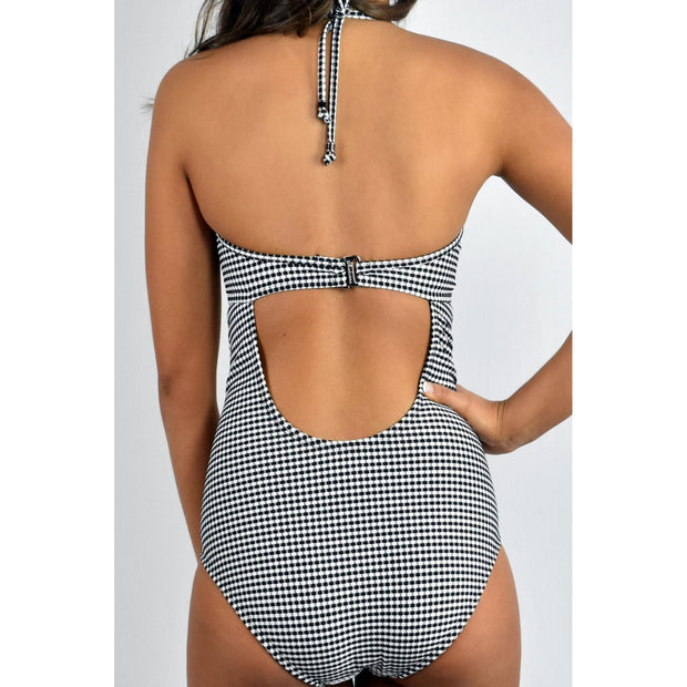 Gingham Jacquard Bra Halter One Piece