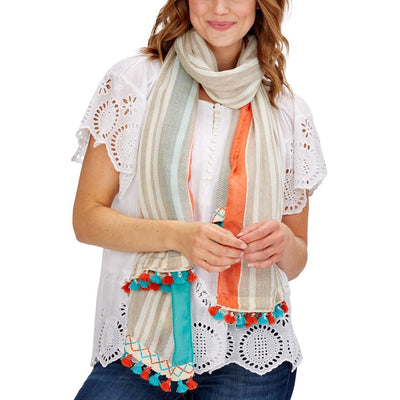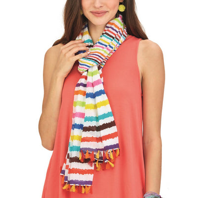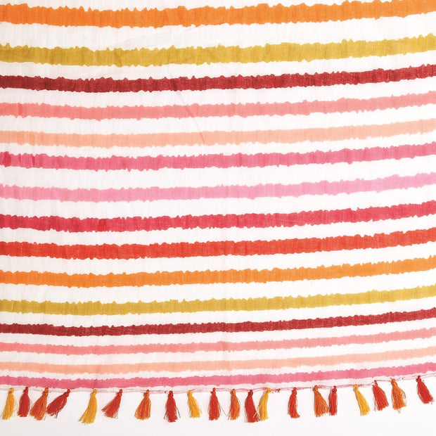 Striped Scarf/Sarong with Multicolored Tassels Assorted 3 Colorways