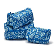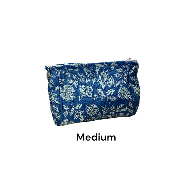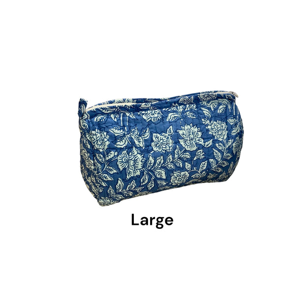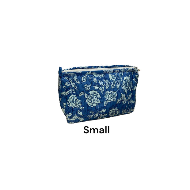 Blue Beauty Hand Block Printed Cotton Quilted Cosmetic Bag