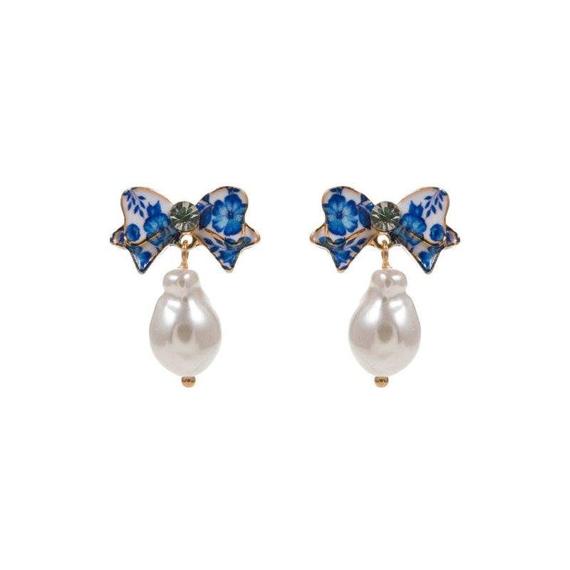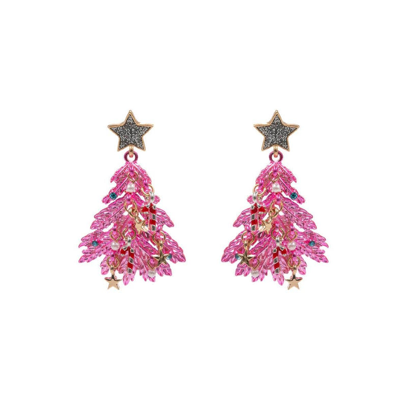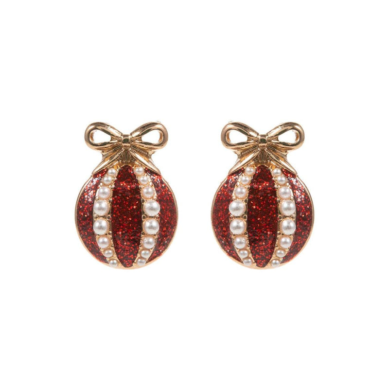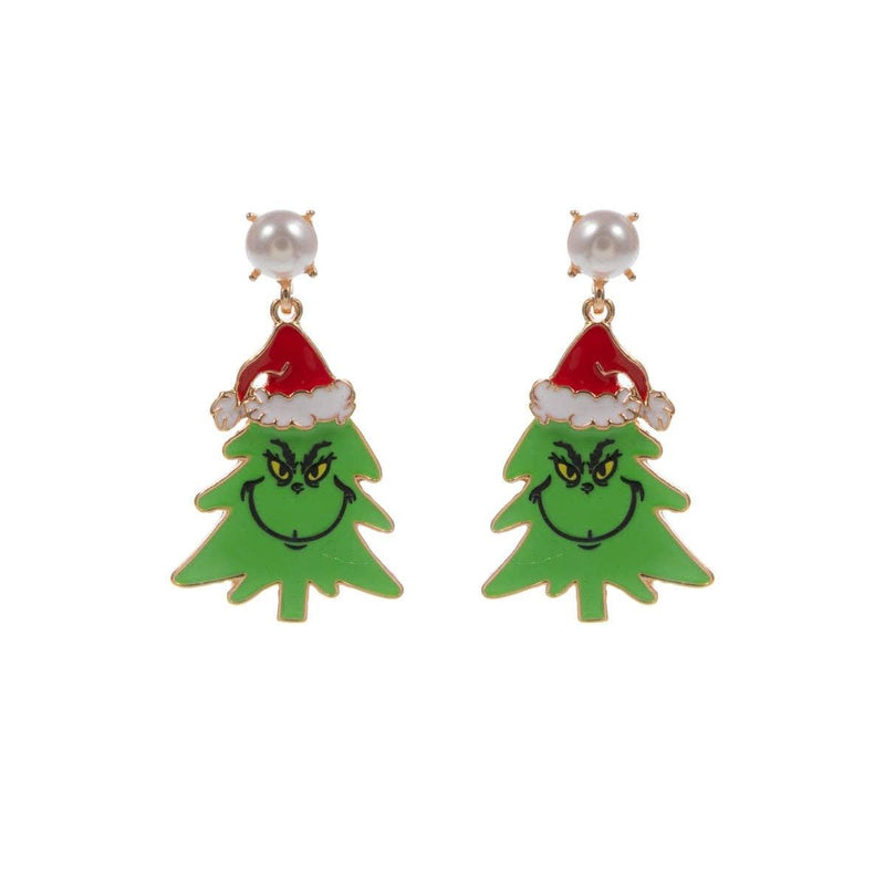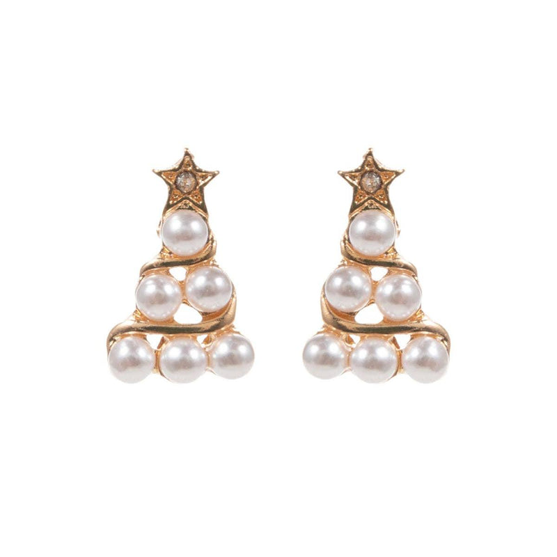 Christmas Tree Ornament Enamel Pearl Post Earrings
