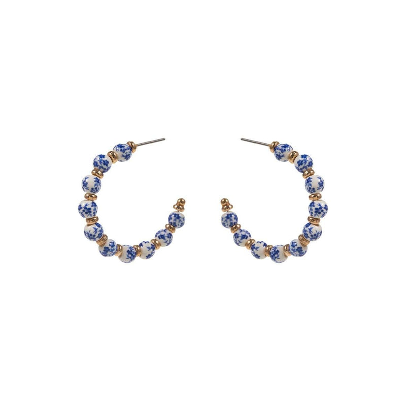 Round Shaped Ceramic Bead Brass Hook Earrings
