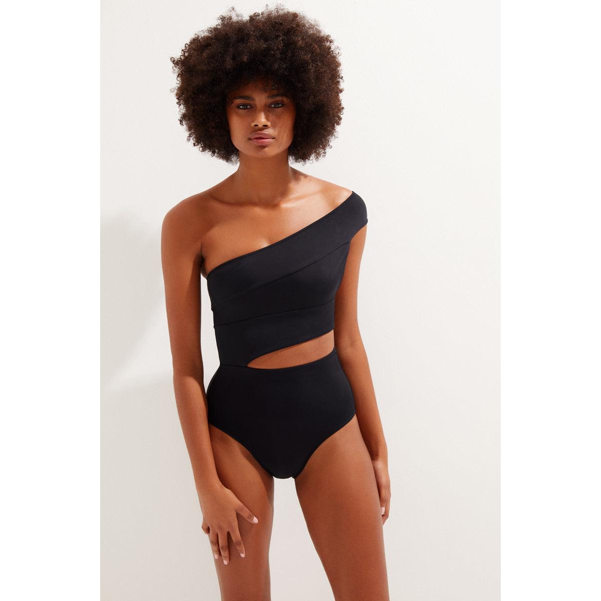 Clubhouse Black Cap Sleeve Zip Front One Piece