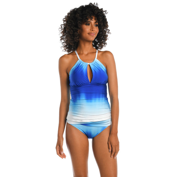 Santorini Block Underwire High Neck Over The Shoulder Tankini Top