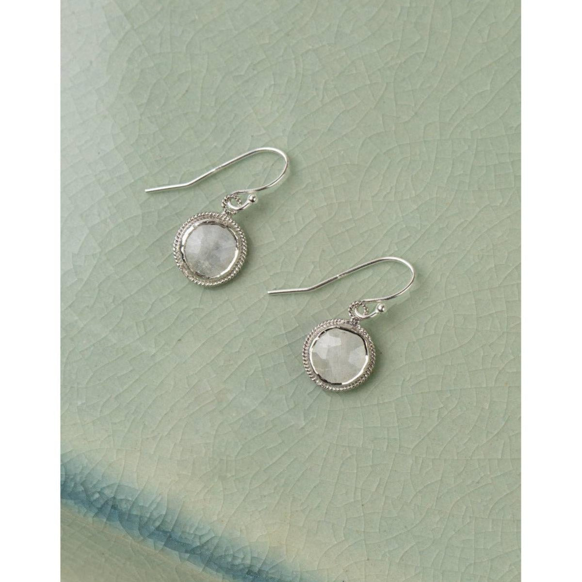 Blush Faceted Rainbow Moonstone Coin Shaped Earrings