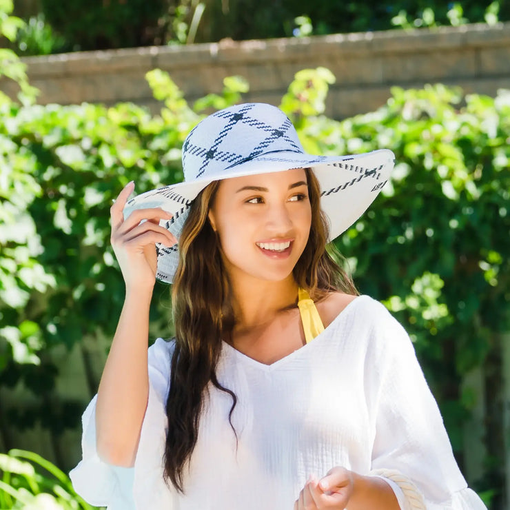 Keep the sun out of your eyes in style with the Inez raffia sun hat. This crisp white sun hat with elegant stripe design is the perfect summer accessory whether you're out in your garden or lounging on the beach.