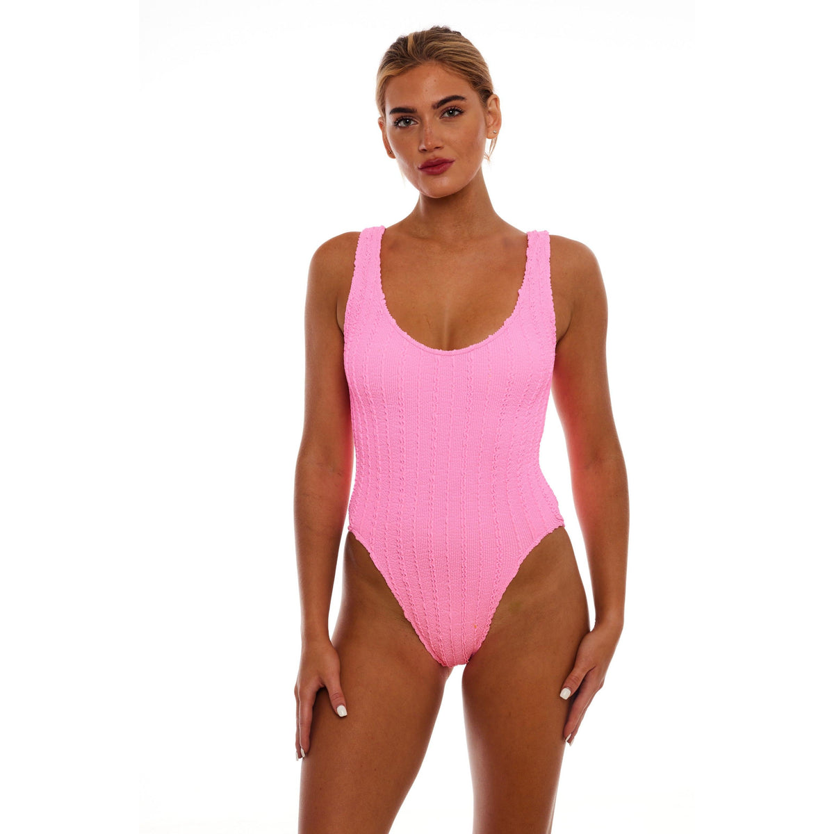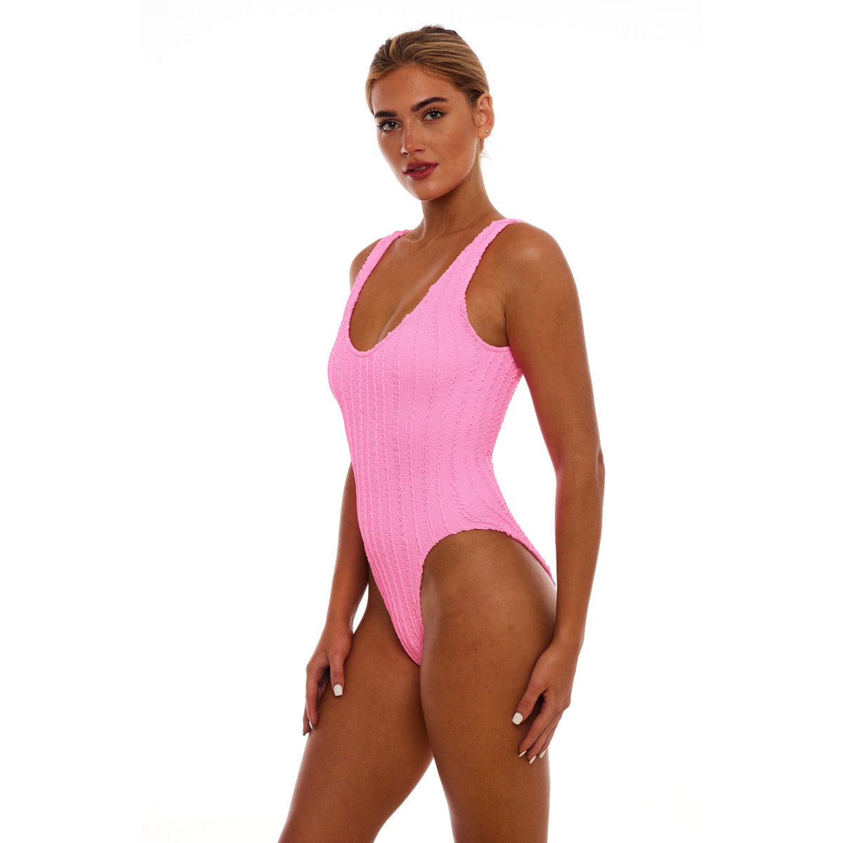 Love And Bikinis Classic Marbella One Piece features a rounded scoop neck, mid-rise back, over the shoulders fixed straps, and full bottom coverage. This best seller is one size fits most and part of the must have Core Collection. This bathing suit has a chic/sexy look and provides all day comfort with a stretchy fit.