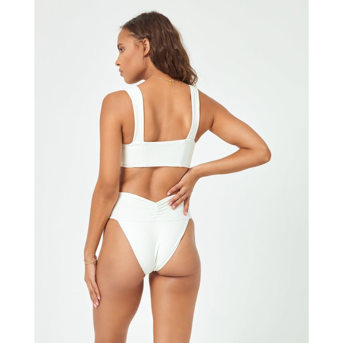 Eco chic is here to stay and the Marlee is our newest earth-friendly bikini top. The bralette style, front ruching and recycled ribbed fabric will have you jumping straight into the nearest body of mother nature's water.