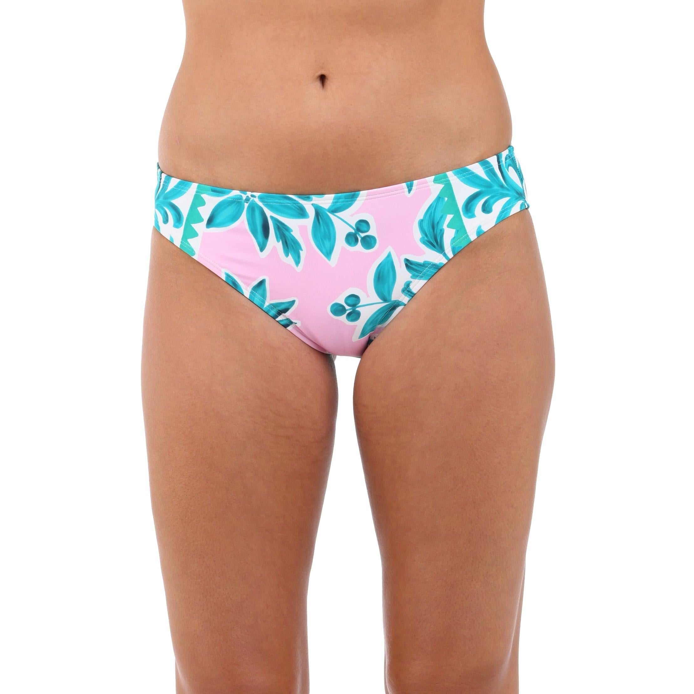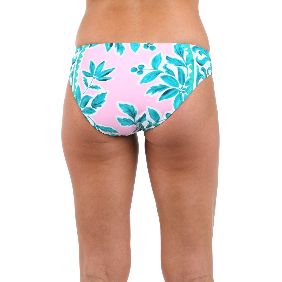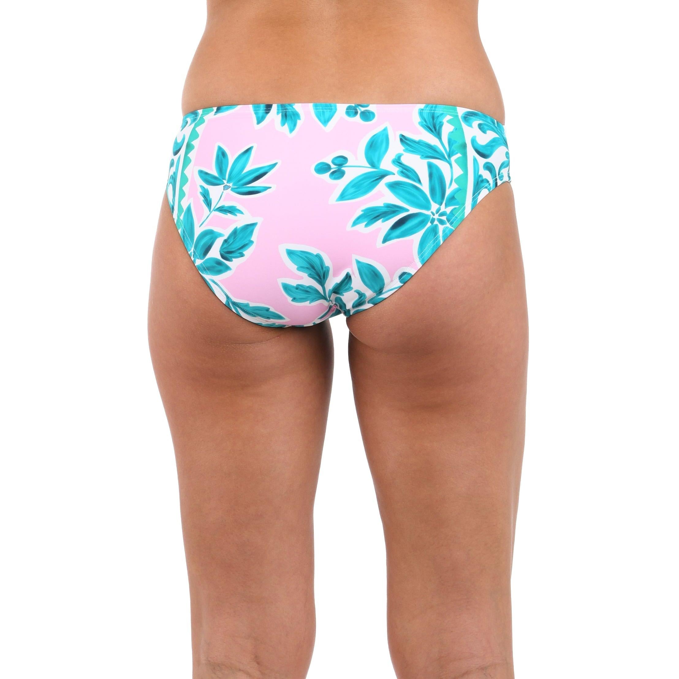 Bright and bold, the vibrant print combines teal and pink in a symphony of intricate floral and leaf motifs, arranged in perfect symmetry. These classic hipster bottoms feature moderate coverage all around and are perfect for a day spent lounging on the beach or soaking up the sun by the pool.