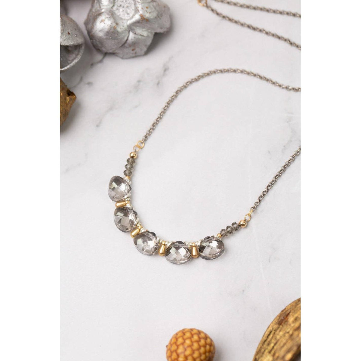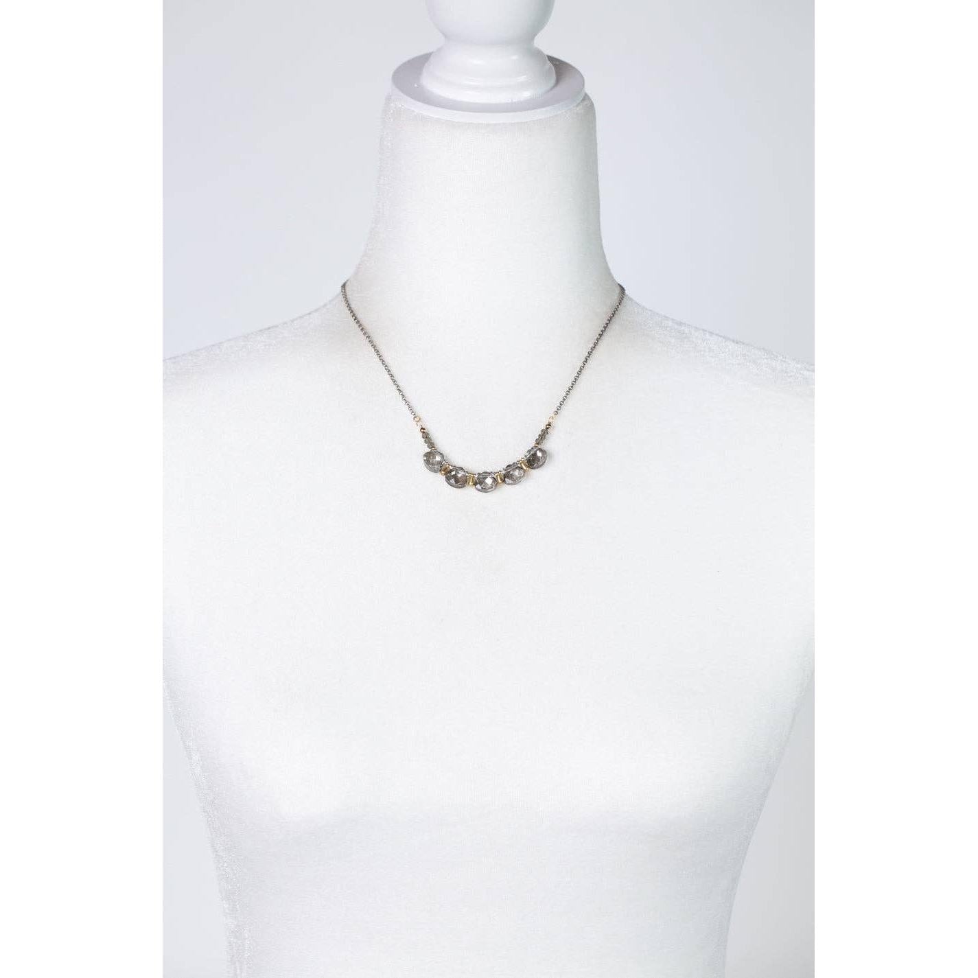 Silver & Gold Crystal Briolette Simple Necklace